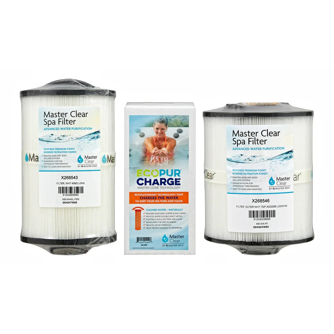 The Filter Set comes complete with the inner EcoPur® Charge filter to reduce heavy metals and obliterate algae, bacteria, and other hot tub "nasties," as well as two skimming filters to catch all the other stuff you don't want in your hot tubs.