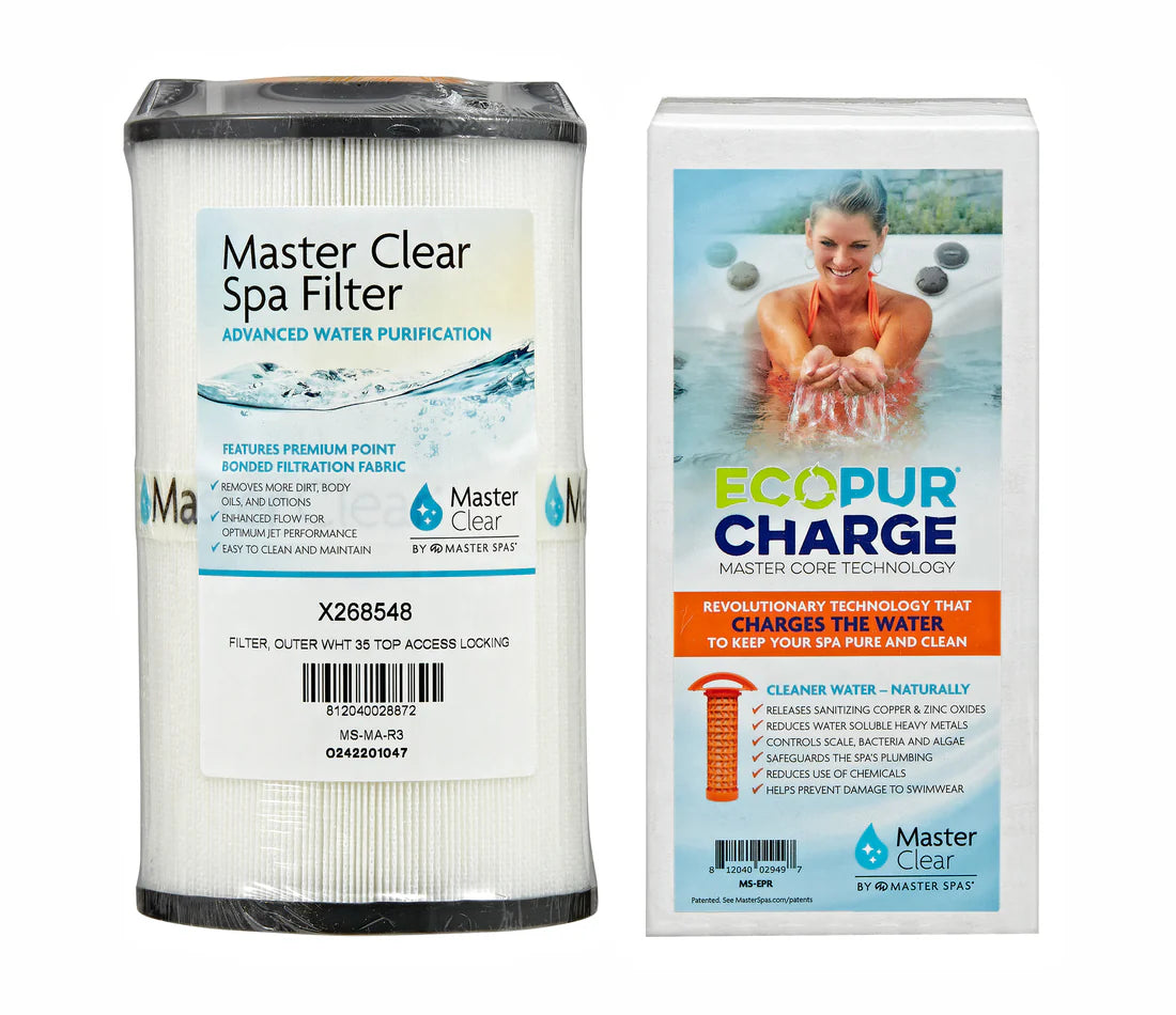 The EcoPur® Charge Filter Set is made for model-year 2024 and later hot tubs. These filters are designed to remove heavy metals, scum, algae, and particulates from your spa for a clean and relaxing experience. Included in the set are the EcoPur® Charge filter and one large skimming filter.