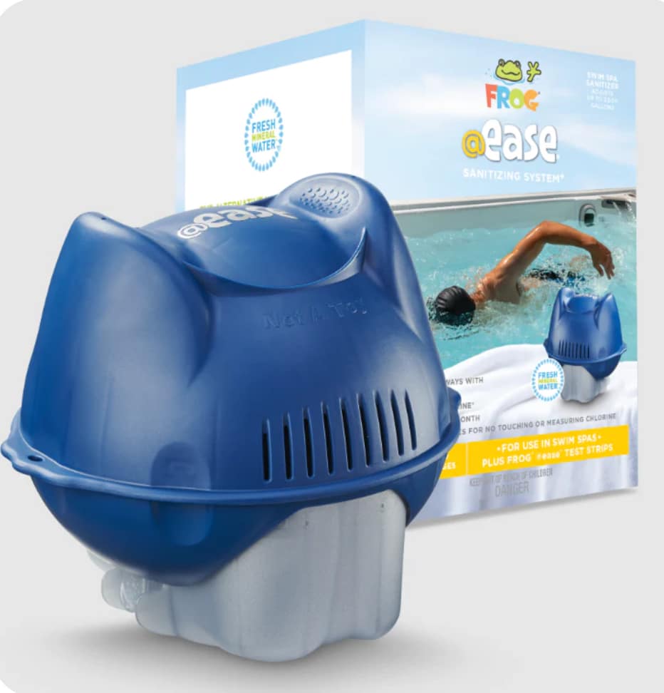 The struggle is over - FROG @ease is here! It's easy to keep your swim spa clean, clear and ready when you are. FROG @ease kills bacteria 2 ways, uses up to 75% less chlorine* and delivers Fresh Mineral Water® in your swim spa - silky soft water with far less odors. FROG @ease maintains a low level of chlorine at all times and conditions the water for softness. It floats in the swim spa, flips when it needs to be replaced and is fabulously easy.